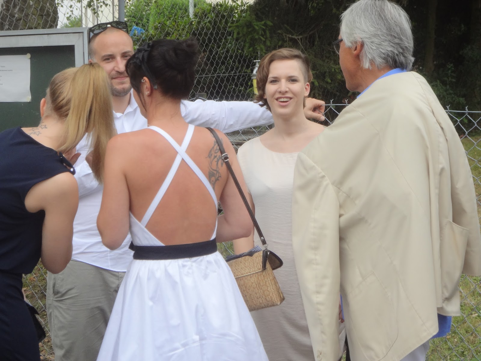 The ceremony was not a traditional Catholic marriage ceremony. Family and friends gathered at the
